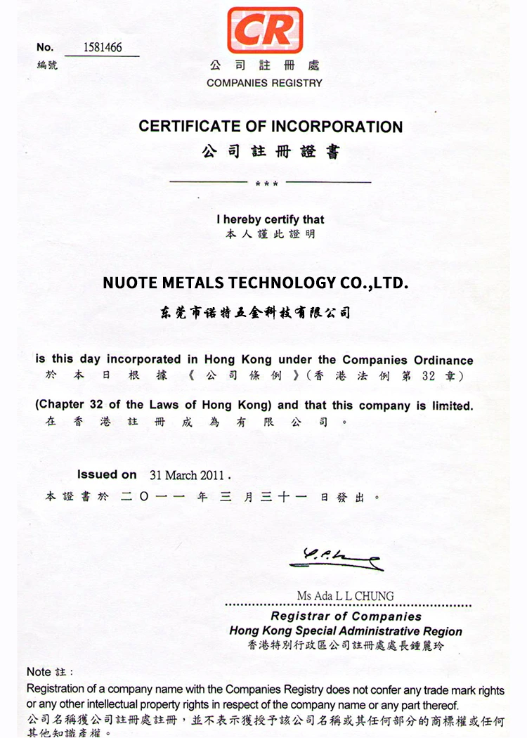 เราคือ Nuote Metals จากตงกวน ประเทศจีน