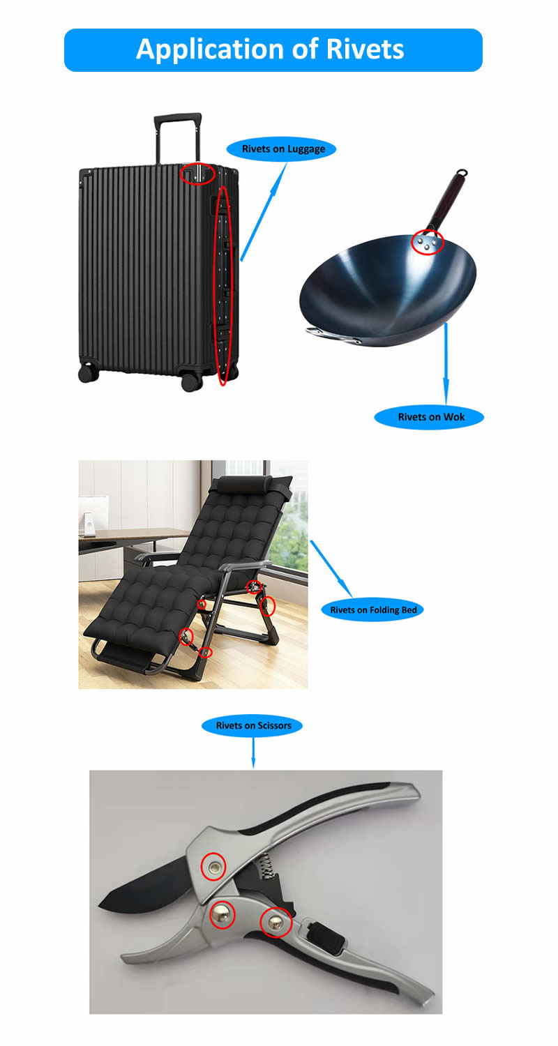หมุดย้ำสามารถนำไปใช้กับกรณีต่างๆ ได้มากมาย ในที่นี้เราเพียงแสดงรายการกรณีการติดตั้งบางส่วนของผลิตภัณฑ์ของลูกค้าปัจจุบันของเรา