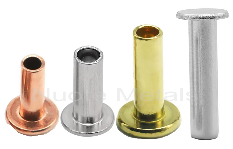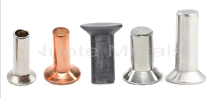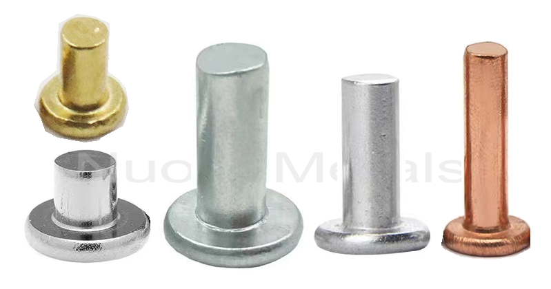 หมุดแข็งหัวแบน ในวัสดุที่แตกต่างกันเช่นทองเหลือง, เหล็ก (เหล็ก), สแตนเลส, อลูมิเนียม, ทองแดง