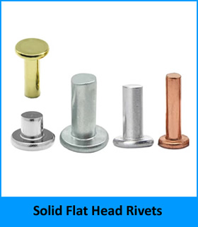 1. หมุดย้ำหัวแบน รวมถึงหมุดย้ำหัวแบน หมุดย้ำกึ่งท่อหัวแบน และหมุดย้ำท่อหัวแบน