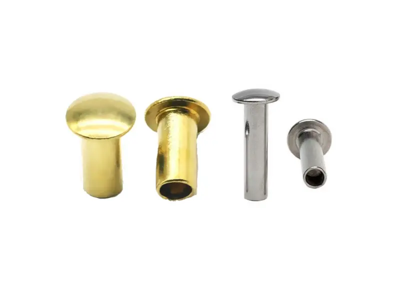 หมุดย้ำแบบท่อครึ่งหัวกลมเป็นตัวยึดเชิงกลทั่วไป หมุดย้ำเหล่านี้มีหัวกลมที่กระจายน้ำหนักได้กว้างขึ้น รวมกับลำตัวกลวงบางส่วนที่เปิดที่ปลายด้านท้าย เช่นเดียวกับชื่อที่แนะนำ หัวรูปทรงโดมช่วยกระจายแรงกดอย่างสม่ำเสมอ โดยปล่อยให้หมุดยึดแนบกับพื้นผิววัสดุเมื่อติดตั้ง การออกแบบกึ่งกลวงช่วยลดน้ำหนักโดยไม่ลดทอนความแข็งแรง ทำให้เหมาะสำหรับการใช้งานที่ทุกกรัมมีความสำคัญ
